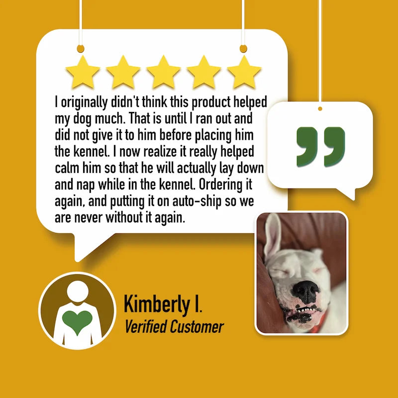 Whether it’s a thunderstorm, car ride, or grooming appointment, CALM helps your dog feel more secure and grounded.