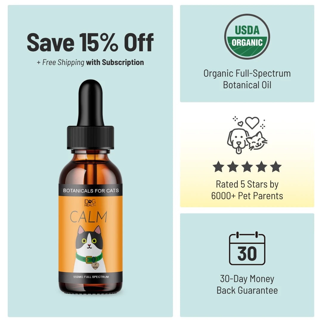 Formulated with Full Spectrum Botanical Extract and calming lavender, CALM is designed to help cats feel at ease during common stressors like travel, separation, or loud noises.